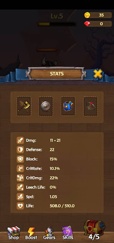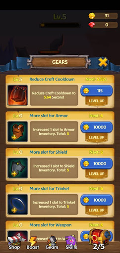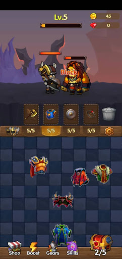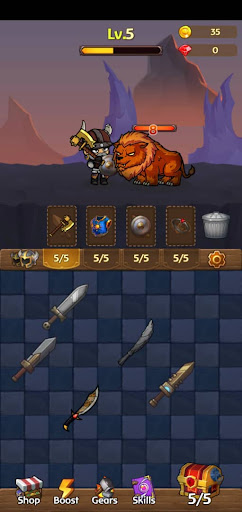 Combine and upgrade weapons for attack and shields to reflect enemy blows. While your RPG hero keeps fighting for you, you can improve his stuff to increase the chances of success.