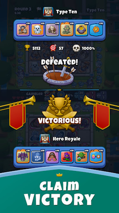 Hero Royale is a real-time PvP game with co-op battles. Plan your merge strategy and master deck strategy to collect heroes and win rewards.