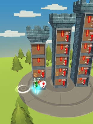 You got to find enemies with lower power then yours and defeat them one by one till no one left.