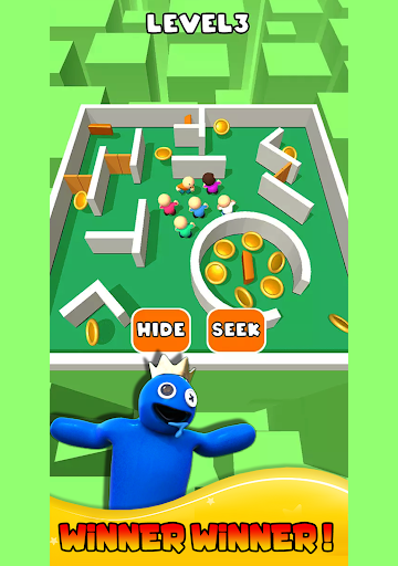 Let’s collect coins and boosters to get the victory and have fun in Choo Cho. In Survivor In Rainbow Monster Hide and Seek mobile game, In Rainbow: Hide and Seek, you can take on the role of a seeker trying to catch the unfortunate victim, or you can hide and live in time-limited missions. Play either as a victim and hide or a monster and seek. choose your favorite role and enjoy the free rainbow hide-and-seek strategy games. Let's come and play with Rainbow Blue Monster Hide and Seek
