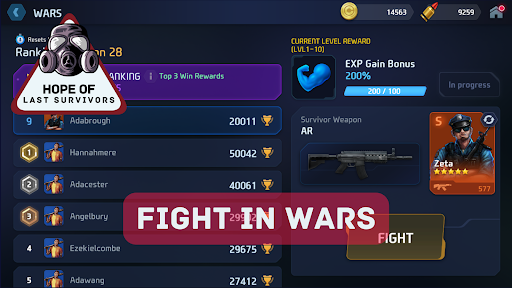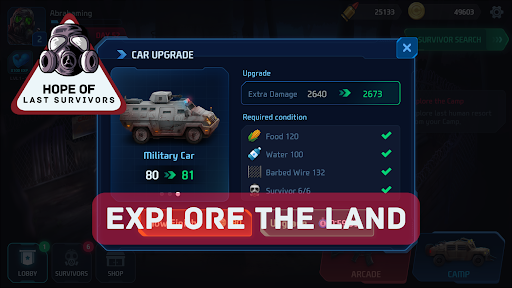Hope of Last Survivors offers a vast map of the region where you can explore the land surrounding your camp, manage your farm, and find valuable resources to help you stay alive and fight competitors in online multiplayer competitions. Becoming acquainted with your surroundings will be crucial to your survival. Locate key structures on the map and ascend the ranks as a last survivor.