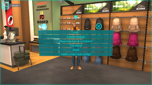 In de virtuele winkel oefen je hoe je klanten verwelkomt en hulp biedt, hun behoeften kent en interesse toont en hoe je een gesprek met hen aangaat.