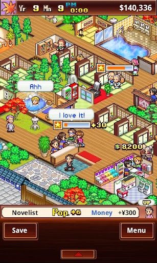 Strategize where to position rooms, restaurants, arcades, and baths to give your guests the ultimate experience of relaxation and luxury. As you carefully plan and layout your resort, you will cultivate the perfect Japanese garden that features lanterns, pine trees, azaleas, and other flora that will delight your guests and impress VIPs such as pop stars and novelists.