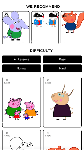 Drawing with the teaching application How to draw Pepa other characters Pig you can not only relax, but also improve your skills. Draw! Feel like an artist!