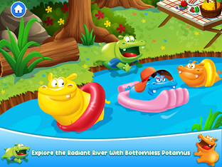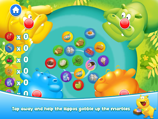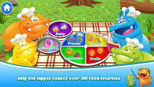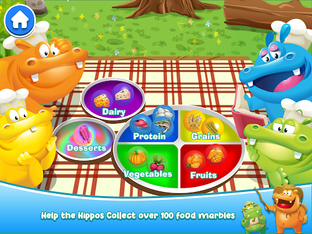 Are you ready to join in the feeding frenzy? Join the Hippos to collect food marbles, discover new foods, learn what foods are good for you and create balanced meals. With your help, the hippos will be chomping away. But hurry! You will have to move fast or the marbles may roll back into the watering hole.