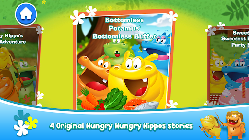 ->4 original stories – Hungry Hippos Hiking Adventure, Bottomless’s Bottomless Buffet, Sweeties Sweetest Birthday Party Ever and Veggie Potamus’s Savanna Safari.