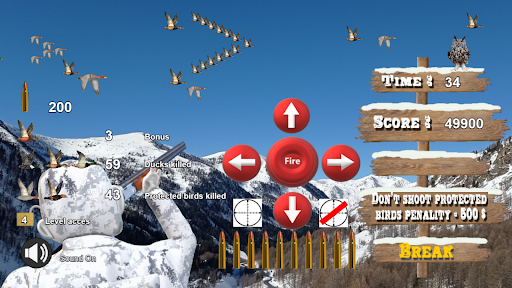 Each duck hunter level presents its own set of unique challenges, ducks flying at different speeds that will test your shooting skills as a hunter, you will have an impressive arsenal of shotguns that you will earn over the course of the game, special ammo and hunting ducks gadgets to help you achieve your goal.