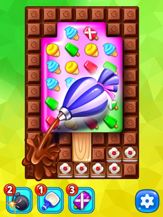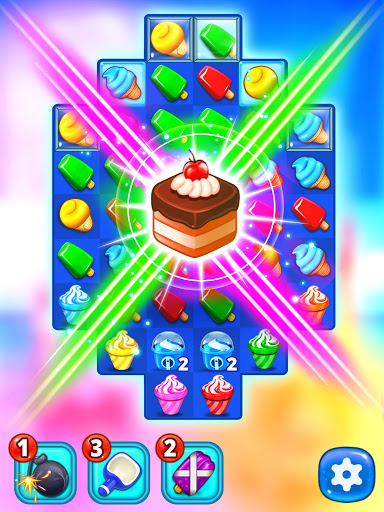 - Solve match-3 puzzles by removing cookies, ice cream, and candy from the screen.