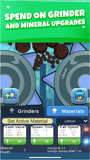 Earn & get rich while offline - Your grinders will keep smashing up materials while you're AFK, earning you cash to spend when you’re back!