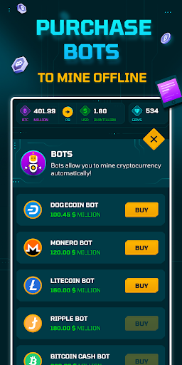 - Purchase bots to mine cryptos while you sleep