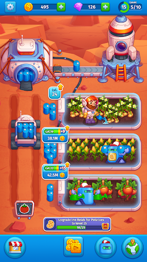Idle Mars Colony: Clicker farmer tycoon is a free simulator game of the clicker genre, where you can try your hand at being the owner of a space farm. It combines the best aspects of idle tycoon games and farming games. Earn money, automate the work and enjoy the exciting gameplay!