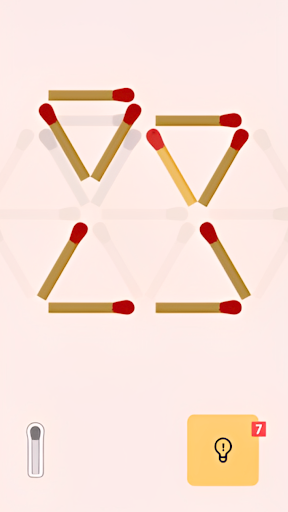 In Matchsticks Puzzle-Move Sticks, making matches isn't just a task—it's an art form. As you navigate through the challenges, you'll discover new ways to manipulate matches, bend them to your will, and conquer each puzzle with finesse. Get ready to immerse yourself in the addictive world of matches puzzle, where every twist and turn brings you closer to triumph.