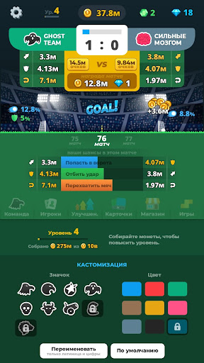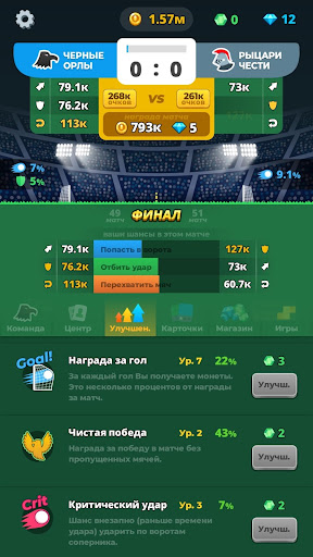 Idleball is a football idle manager with unusual game mechanics. To win, you will need to hire and improve players with certain characteristics: attack, defense, and interception, as well as improve them to become successful and earn money by winning matches.