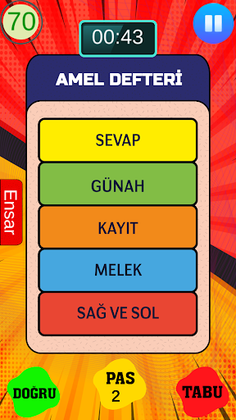 2 Takımla oynanan İslami Tabu oyununda hem eğlenecek hem de öğreneceksiniz. En az 4 kişiyle oynan oyunumuzda herkese kolay gelsin.