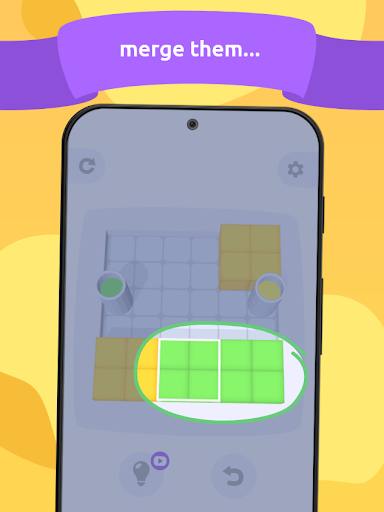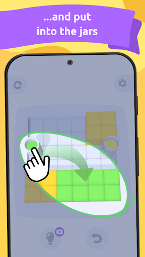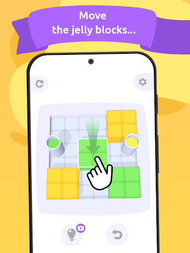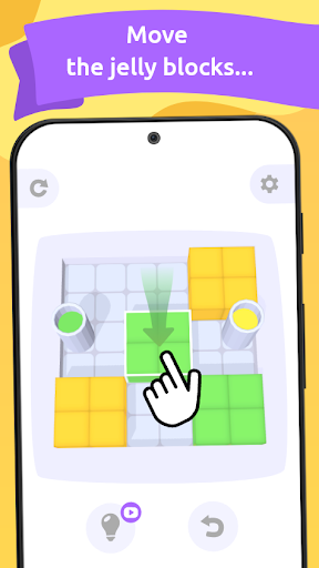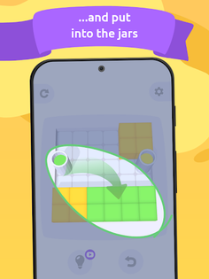 The rules are easy: you need to remove all the jelly blocks from a scene. This is done by merging them by color and putting them into jars. The blocks merge but not stack and can become a barrier to each other. To avoid that you need to figure out the right way of dragging and merging jelly blocks in order to connect them with jars and solve the puzzle.