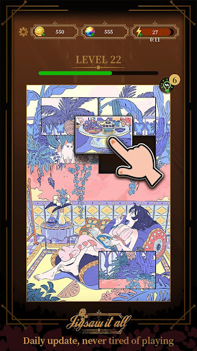 In this fun jigsaw puzzle game, all kinds of jigsaw pieces are randomly shuffled, use your wisdom and fingers to drag the pieces of the same shape to swap positions, and merge the scattered pieces into a perfect puzzle!