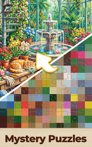 Jigsaw Puzzles contains thousands of high-quality HD pictures in a wide variety of collections, such as beautiful landmarks, wonderful food, interesting people, amazing art, lovely animals, and so on. The coin system brings you more fun. Play, earn coins, and unlock more free puzzle games! Try Mystery Puzzles and find hard puzzle games, too.