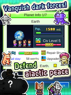 In between missions, upgrade your traveling colony from protective barriers to retail centers and you might appeal to curious extraterrestrial voyagers from uncharted planetary systems. You may even put on display wild creatures caught while on patrol. Can you collect all of them?