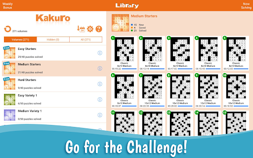 For more fun, Conceptis Kakuro includes a Weekly Bonus section providing an extra free puzzle each week.