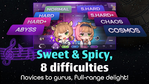 This mobile game offers an original top-down rhythm gaming experience with a twist. The challenge of the game is to obtain the score by touching the notes in accordance with the lines of judgment, much like any other rhythm game. It features a collection of more than 50 songs, with the option of adding more through in-app purchases, reaching beyond 100 songs. Its repertoire includes handpicked songs with quality illustrations, making the gaming experience more enjoyable. In total, there are over 250 note patterns available in this game.