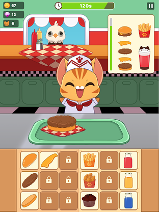By starting as a novice cat cook with a tiny kitchen, you will experiment with exotic ingredients from all corners of the world and create more than a hundred distinct types of burgers that will satisfy the appetite of the famished animals. Your goal is to enhance your skills, personalize your chef, and finish quests to be the ultimate cat-chef worldwide.