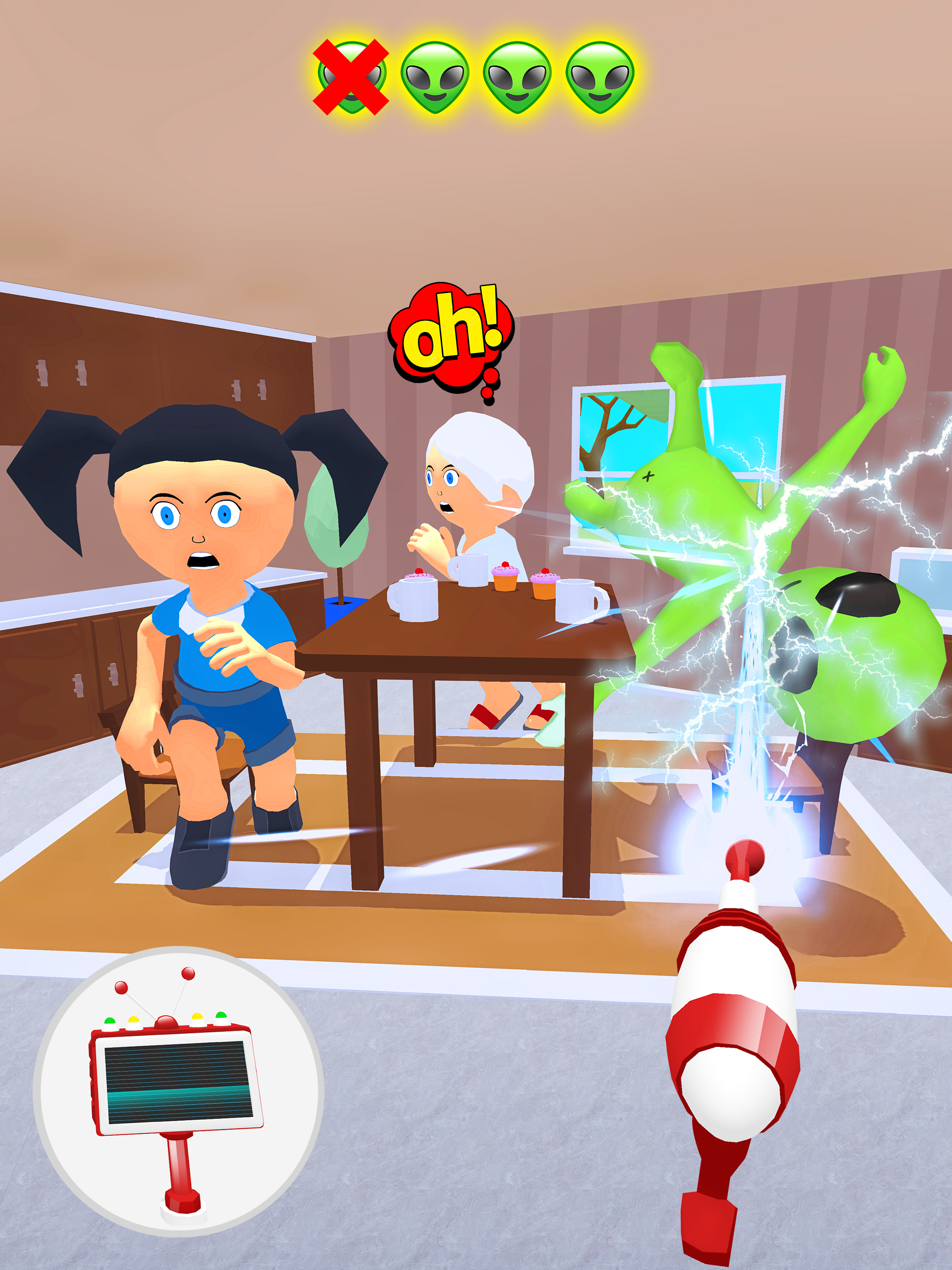 - Use guns wisely to catch the right aliens