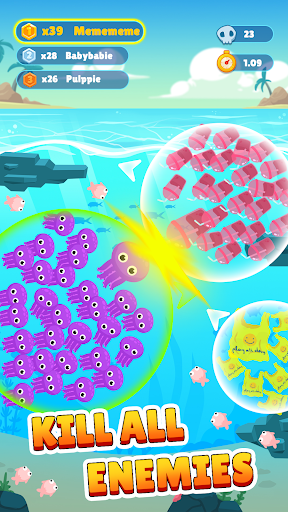 Collect homeless fish, swallow your opponent's team, become the largest clan of fish in the world, and save the Atlantis! Use the booster to defeat your enemies rapidly