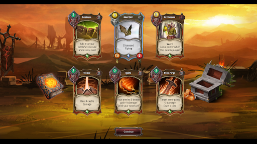 In Kingdom Draw, you must master turn-based strategy by playing army, support, and beast cards on the hexagonal grid map. Control locations for additional resources and use terrains to your advantage. Defeat your enemy by destroying their castle and using power cards to obliterate their card decks.