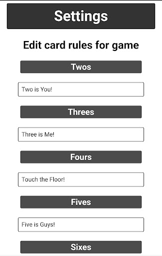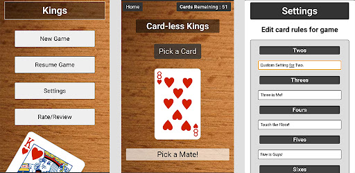 Kings Cup - Cardless version of kings cup that allows you to customize your card's settings and save it to your device for future use.