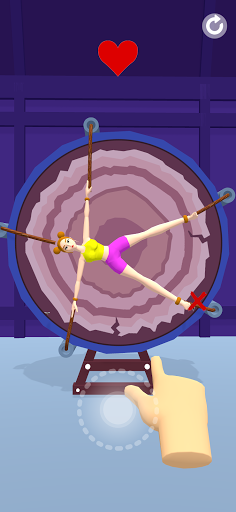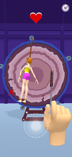 Knife Throw : Break the ropes to free the girl, be careful not to hurt her, be delicate, check your aimHow good a shooter are you?