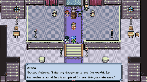 Knight Eternal is a 90s gameboy-style RPG that tells the story of Dylan and his journey across the world with the angel Astraea, the young princess Primrose, and her retainer Goliath.