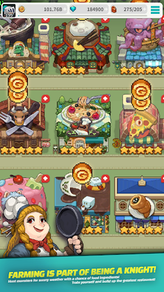 As a Delivery Knight, you will not only be responsible for deliveries but also for battling monsters and farming for ingredients that could make your restaurant the talk of the town! With idle play, financial freedom is within your reach, and endless growth awaits. Get stronger with each dungeon and spice up your menu with exotic recipes!