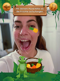 support. What is particularly important for a children's app? Simple, child-friendly operation. Therefore, the games can easily be completed without numbers or letters. Posture also plays an important role in the healthy development of the mouth. If the head is upright, all muscles in the mouth, nose and throat area can be used in the best possible way. The app automatically recognizes the position so that the mobile phone or tablet does not lie on the lap while playing and the neck is overextended. Leon reminds the children to keep the device upright - only then can they continue playing.