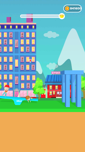 Find the right place on the seesaw, jump up and bounce the person at the other end, let him fly higher and penetrate more boards, so as to have fun.