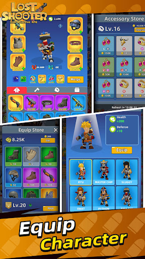 Lost Shooter is a survival+shooting+casual RPG game. The wheel of destiny is turning... You strayed into a lost island due to an air crash. It's time to build your base, equip your character, summon your companions, defeat enemies from different eras, and smash the path planned by destiny!