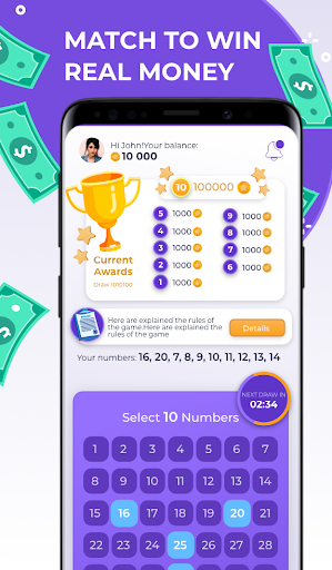 Match 10 out of 80 numbers and win REAL MONEY. Givvy Lucky numbers is a free lottery that runs every 10 minutes. If you haven’t guessed the 10 correct numbers, then the reward will be transferred for the next draw. Win up to $1000. The results of each draw are updated right after each draw and let you know if you have winning numbers.