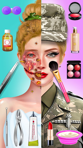 If you love to play makeup and dress up games for girls this relax spa girl's games are only for you because in this Army Makeover: Spa ASMR Games you are not only doing the Beauty Spa but also providing emergency first aid to men and women. Perform the surgery ASMR for the army dress-up character in the makeup ASMR games to have a real feel of a surgery doctor. Enjoy the ASMR simulator makeover and relax features. Become a makeover master for DIY makeup ASMR in relaxing spa salon games for girls free.
