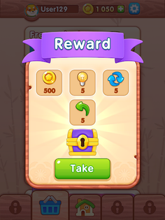 You receive gold coins for each completed level. The coins could be exchanged for hints and boosters. The harder the level is, the more coins you get! Complete a few levels and get a mysterious chest with more bonuses as a reward! Log into the game every day and get free bonuses to improve your score!