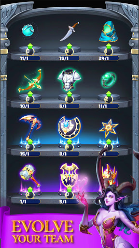 Summon hundreds of legendary heroes and lead your army to master the war between gods and evil. Strengthen them with magical upgrades and special gemstone skills.