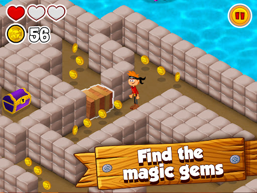 Have fun with over 25 levels and negotiate all kinds of obstacles in order to get to the chest that holds the gem. It will be a real adventure—you'll have to deal with quicksand, bewitched parrots, volcanoes with lava, puzzle games, magic doors, funny carnivorous plants, etc. It will surprise you!