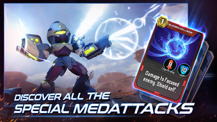 Step into the thrilling world of Medabots, and start indulging in action-packed card battles with your own personalized robots. Immerse yourself in an exceptional adventure with RPG elements where you create your bots with various parts and collect cards; assemble a team of powerful robots with diverse abilities, and compete in a turn-based PvP card fight.