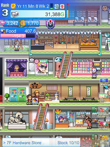 In addition, this amazing game allows your progress to be saved on your device. However, once you delete or uninstall the app, all data saved is lost. To explore other games from Kairosoft, browse for "Kairosoft" or visit https://kairopark.jp where you can access their free and paid games. As always, follow Kairosoft on Twitter to keep up with all the developments. Enter the world of business management with Mega Mall Story 2 and unleash your creativity to see how much you can achieve.