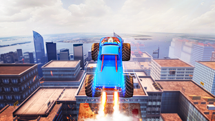 Get ready for an adrenaline rush in Mega Truck Rooftop Stunt Games!
