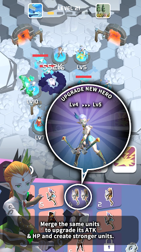 Merge the same units to upgrade its ATK & HP and create stronger units.