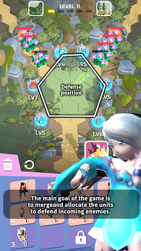 The main goal of the game is to merge and allocate the units to defend incoming enemies.