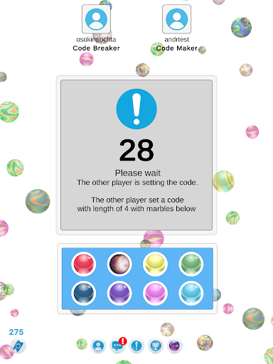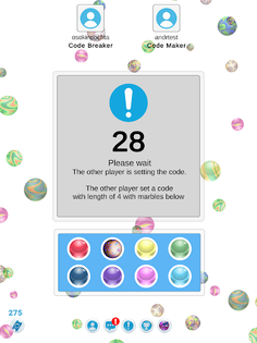Enjoy playing with a friend by taking turns setting and breaking the secret code made of a string of marbles.