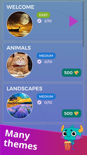 Access to the core of playing with Animals, Landscapes or Egypt Packs of images. Challenge yourself with the increasing difficulty. Improve your mind by exercising your logical thinking.