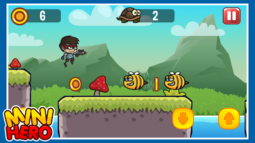 Well, you’ll love the run and jump adventure in Mini Hero: Going Viral. This two D runner jumper & shooter puts you in the forest where you need to shoot the monsters and collect more heroes, use the power-ups to run faster, shoot while jumping, slide and attack, collect coins and get the best score ever!🌴 JUNGLE FOREST ADVENTURE