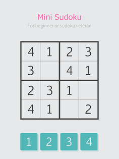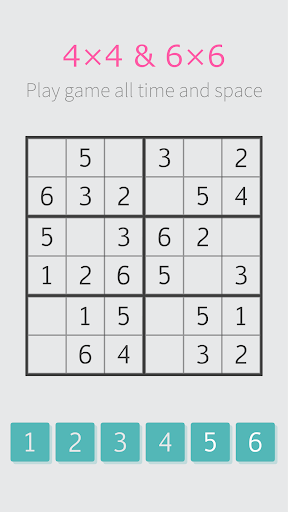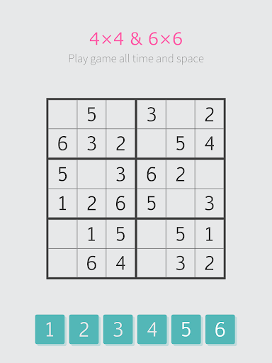 Mini Sudoku offers 4x4 and 6x6 grids for all skill levels, with user-friendly touch controls and 1825 diverse stages on smart devices.