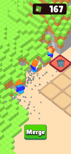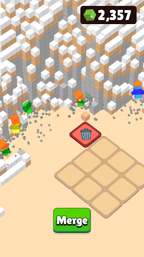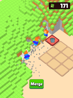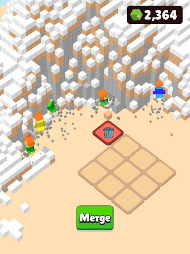 Chill, relax and dig various voxel landscapes with your little mergeable miners.